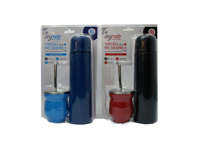 MATE METALICO CON BOMBILLA+TERMO BALA 0.5 LTR 12295