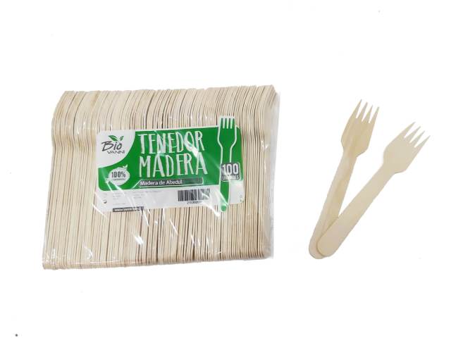 COCTAIL TENEDOR BIO MADERA X 100 UND
